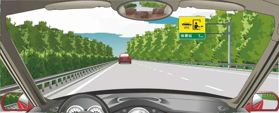右侧标志指示距离设有电子不停车收费车道的收费站1公里。