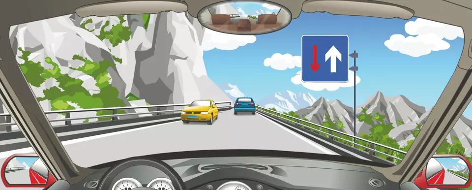 右侧标志表示会车时对向车辆先行。