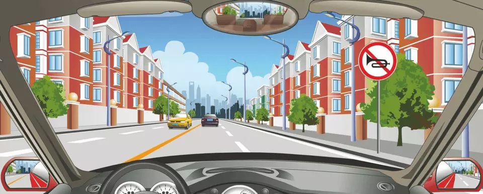 右侧标志表示不允许长时鸣喇叭。