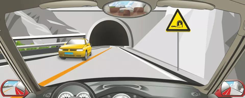 右侧这个标志警告进入隧道减速慢行。