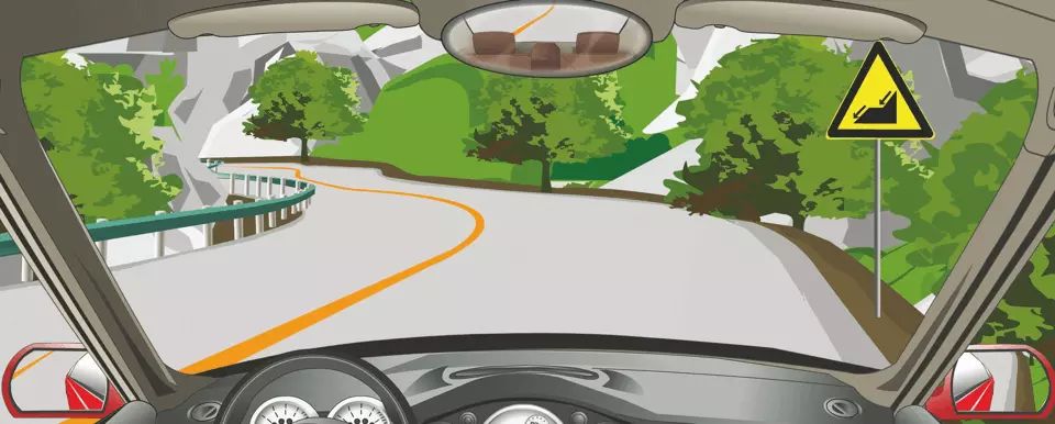 右侧标志警告前方是下陡坡路段。