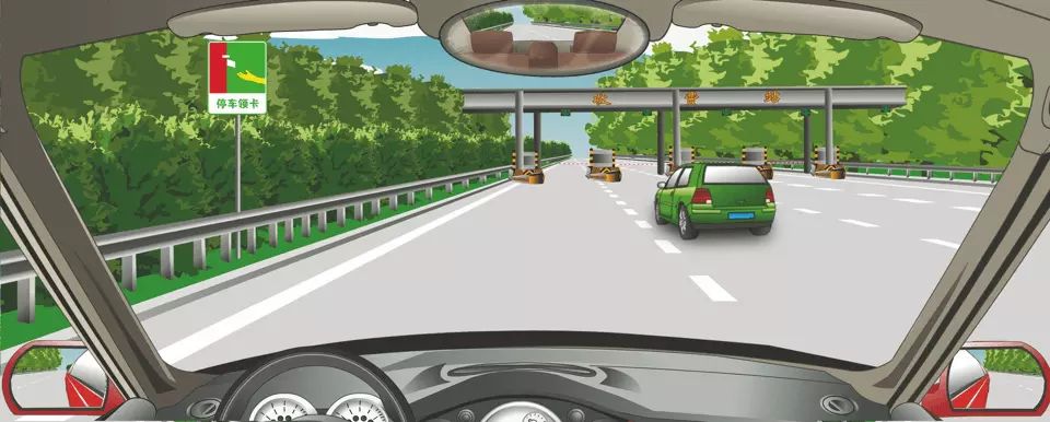 左侧标志提示前方收费口停车领卡。