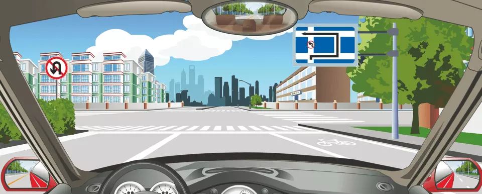 <p>右前方标志指示前方路口左转弯绕行的路线。<br><img style="width: 100%;height: auto;