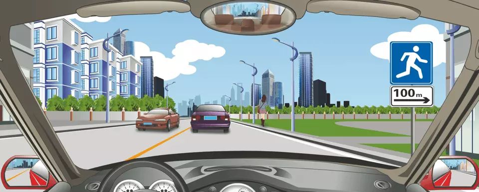 <p>前方标志告知向右100米为室内停车场。<br><img style="width: 100%;height: auto;"