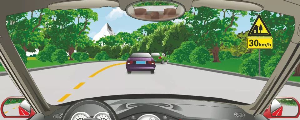 右侧标志提醒前方有村庄或集镇,建议速度30公里小时。