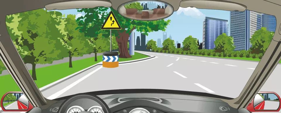 <p>图中标志提醒障碍物在路中,车辆从右侧绕行。<br><img style="width: 100%;height: auto
