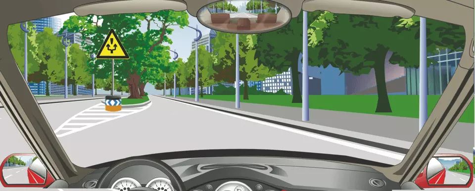 <p>图中标志提醒障碍物在路中,车辆从右侧绕行。<br><img style="width: 100%;height: auto