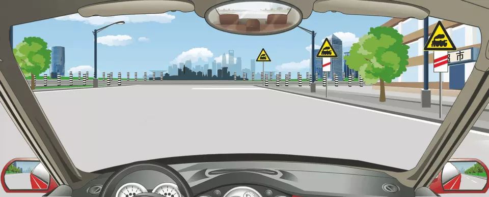 <p>右侧标志警告前方150米是无人看守铁路道口。<br><img style="width: 100%;height: aut