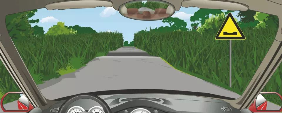 右侧这个标志提醒前方路面低洼。