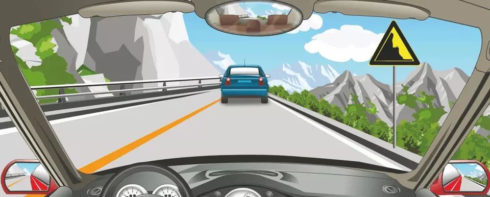 右侧这个标志提醒注意前方是傍山险路。