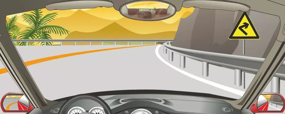 右侧标志警告前方是向右急转弯路。