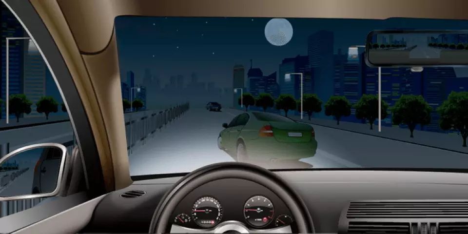 如图所示,夜间驾驶机动车遇到其他机动车突然驶入本车道,可加速从右侧车道绕行。