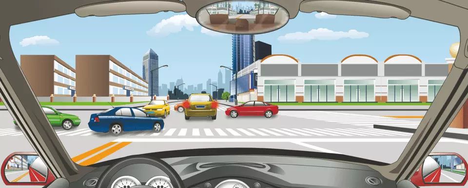 <p>驾驶机动车在这种情况下要跟前车进入路口等待。<br><img style="width: 100%;height: aut