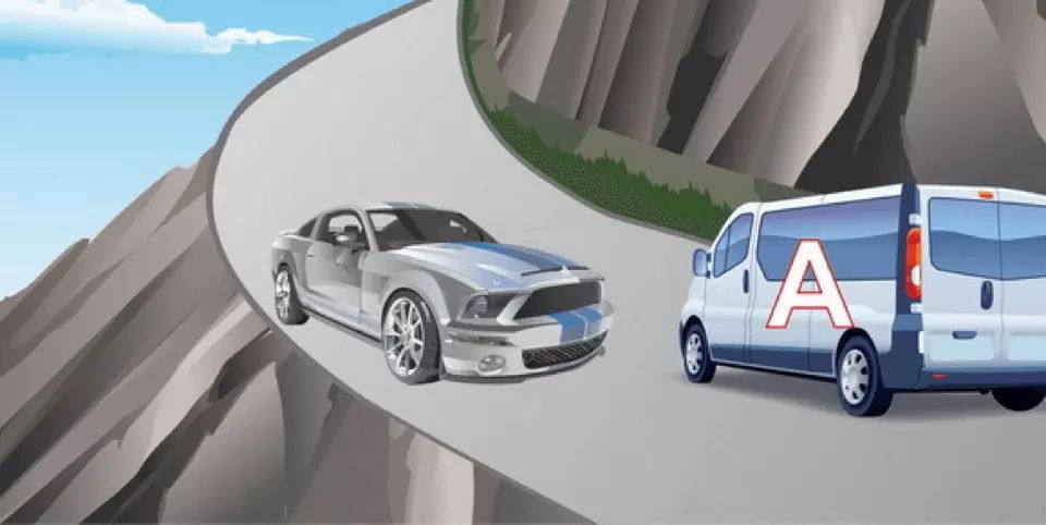 如图所示,驾驶机动车遇到这种情况,A车应当主动减速让行的原因是什么?