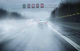 驾驶客车在图中所示的雨天路面上紧急制动或猛转方向时,易造成侧滑或行驶方向失控。