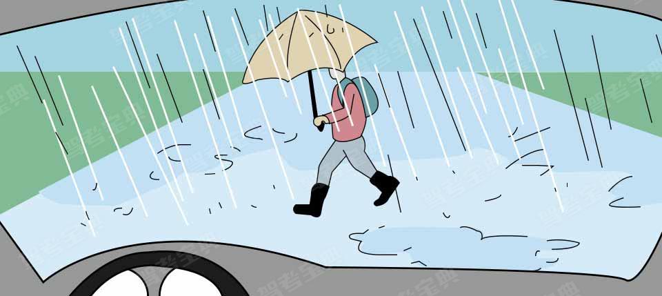 驾驶客车在图中所示的雨天行驶时,路上行人视线受限,观察和反应能力下降,行车安全风险加大。