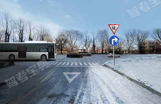 如图所示,此路口右转弯极易发生的危险有___。
