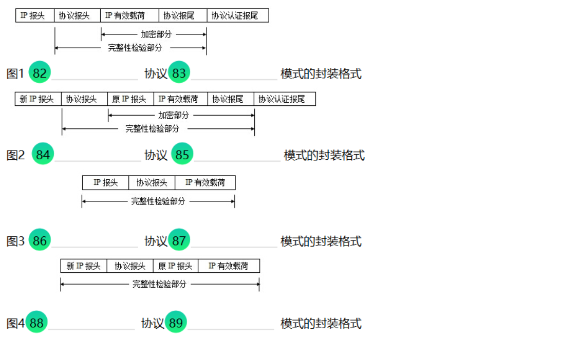 网络、应用、安全载荷封装、传输、安全载荷封装、隧道、认证协议头、传输、认证协议头、隧道