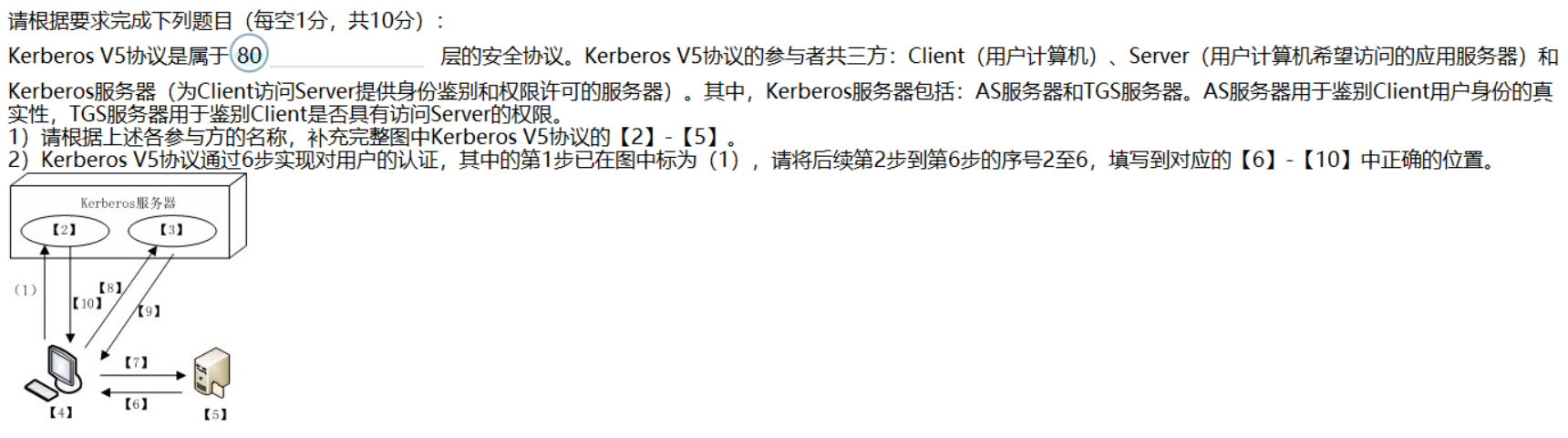 应用、AS、TGS、Client、Server、6、5、3、4、2